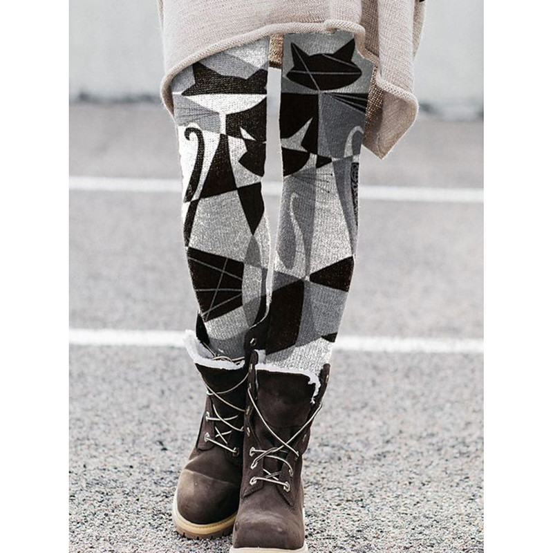 Women's Leggings Vacation Vintage Ethnic Style Ankle-Length High Waist Graphic Animal Cat 3D Print Quick Dry Breathability Soft Stretchy Outdoor Home Causal Black Grey Black White Gray Fall Winter