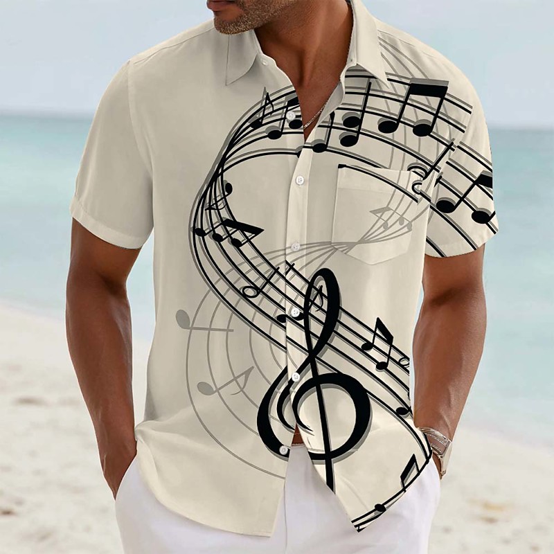 Men's Musical Notes Shirt Summer Shirt Button Up Shirt Short Sleeve Fashion Casual Daily Music Festival Summer Spring Turndown 3D Print Collared Shirts Front One Pocket Blue White Pink Khaki