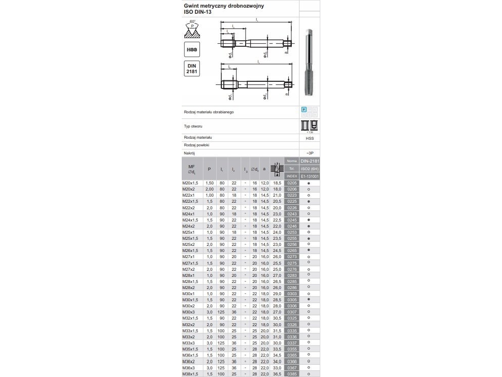 Fanar TINEER M12x1 NGMM/1 DIN-2181D (6 H) HSS