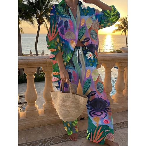 Per donna Set di Pantaloni Bolero Top Manica Lunga Colletto a Camicia Geometrico Moda Streetwear Quotidiano All'aperto Spiaggia Blu Rosa Rosa scuro Estate Vestibilità comoda