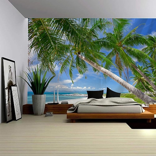 spiaggia albero di cocco paesaggio estate arazzo appeso murale arte grande arazzo murale decorazione foto sfondo tappeto tende casa camera da letto soggiorno decorazione
