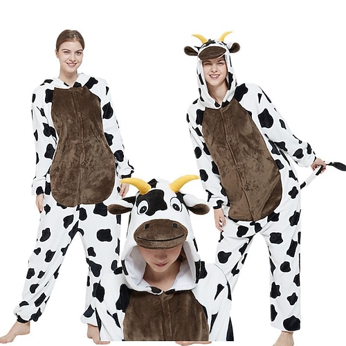 Costume di Carnevale 2026 Fantasia animale Cow Carnevale Pigiama Kigurumi Costume di Gruppo Costume tutina Caldo Comodo Con cappuccio Pile Bambini Adulti Per uomo Per donna Ragazzi Halloween Carnevale