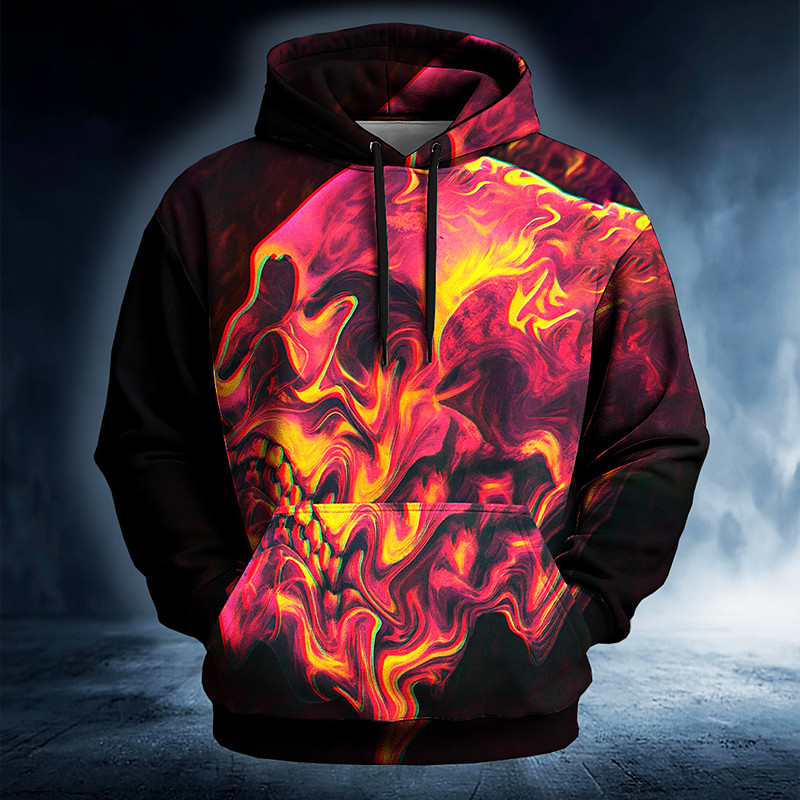 Men's Skull Abstract Hoodie Sweatshirt Punk Exaggerated Gothic Casual Long Sleeve Crew Neck Hooded Club Streetwear Yellow Red Purple Drawstring Fall Winter Designer S M L XL XXL XXXL