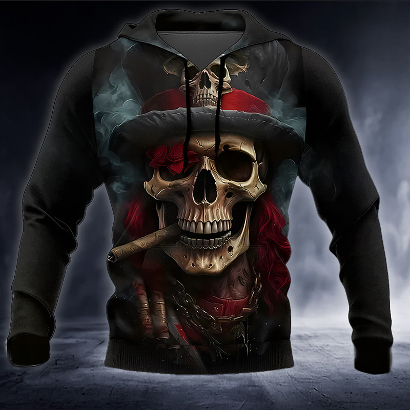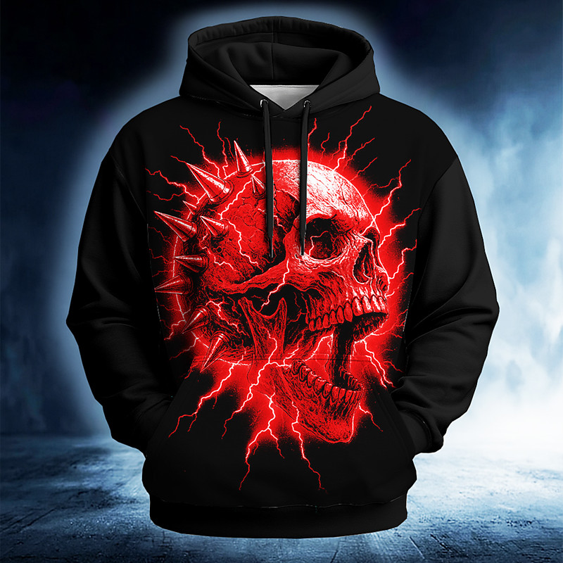 Men's Skull 3D Hoodie Sweatshirt Punk Exaggerated Gothic Casual Long Sleeve Crew Neck Hooded Club Streetwear Red Blue Green Gray Drawstring Fall Winter Designer S M L XL XXL XXXL