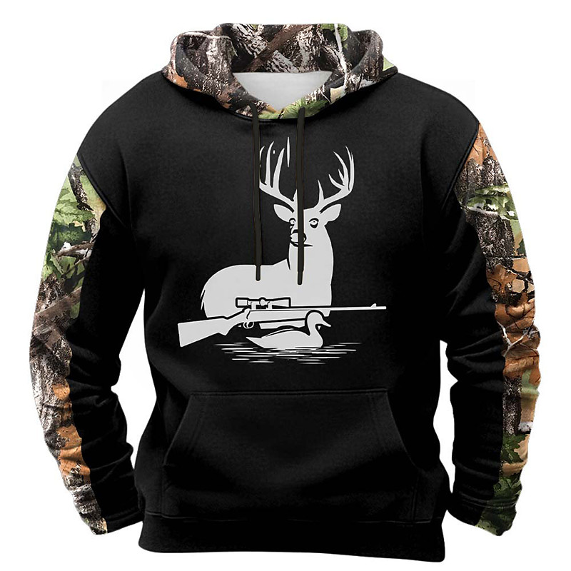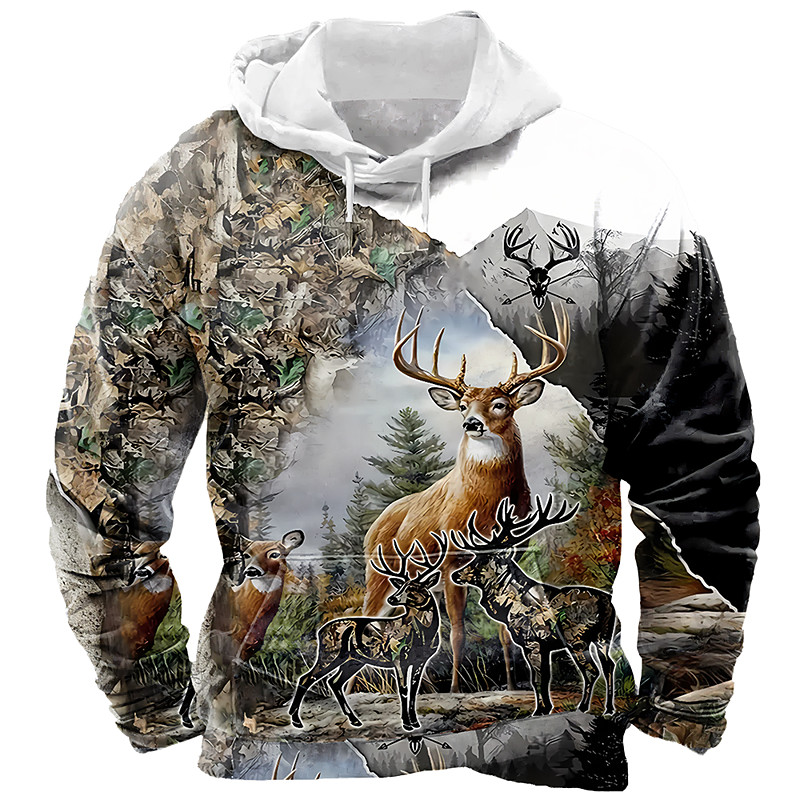 Men's Deer Hoodie Sweatshirt Fashion Classic Crew Neck Outdoor Hunting Black Brown Khaki Brown 2 Drawstring Fall Winter Designer S M L XL XXL XXXL