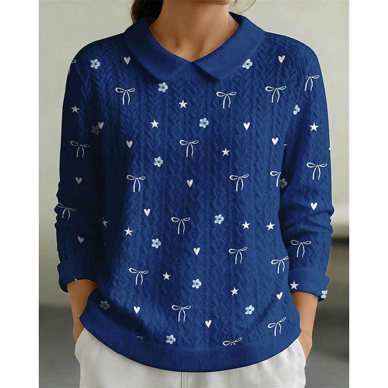 Women's Pullover Sweatshirt Graphic Plain Elegant Warm Fashion Long Sleeve Lapel Regular Tops Home Work Street Patchwork Print Blue Sapphire Pink Dark Green Light Purple Fall Winter
