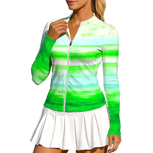 Per donna Geometrico Sfumatura A righe Top Maglietta sportiva Maglia da tennis Manica Lunga Cerniera Floreale UPF50 Resistente ai Raggi UV Alta elasticità Traspirante Pallavolo Tennis Golf Il giro