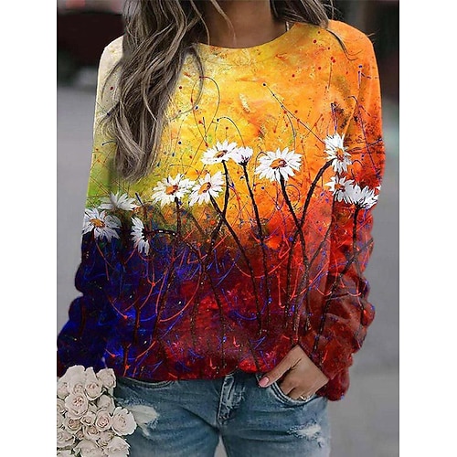 Per donna Felpa Pullover Grafico Casual Manica Lunga Girocollo Top Regolari Casuale Streetwear Ferie Stampato Blu Bianco Giallo Azzurro cielo Viola Primavera Inverno