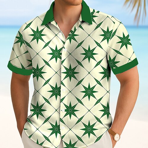 Herren Karo / Karomuster Pentagramm Hemd Sommerhemd Knopfhemd Kurzarm Modisch lässig Outdoor Urlaub Alltagskleidung Sommer Frühling Umlegekragen 3D-Druck Hemden mit Kragen Weiß Hellgrün Blau Grün