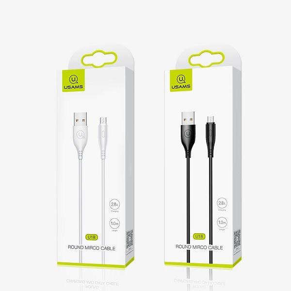 USAMS Kabel U18 microUSB 2A Snabbladdning 1m vit SJ268USB02