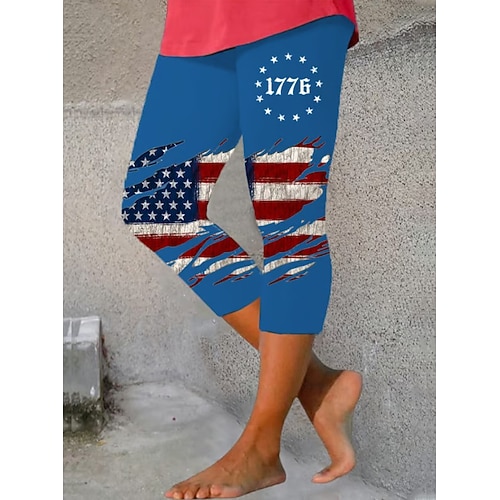 Per donna Pantaloni capri Leggings Abbigliamento da casa Vacanza Vintage Moda Capri Misura del girovita medioPantsGiorno dell'indipendenza americana Grafico Bandiera Stampa Comodità Morbido