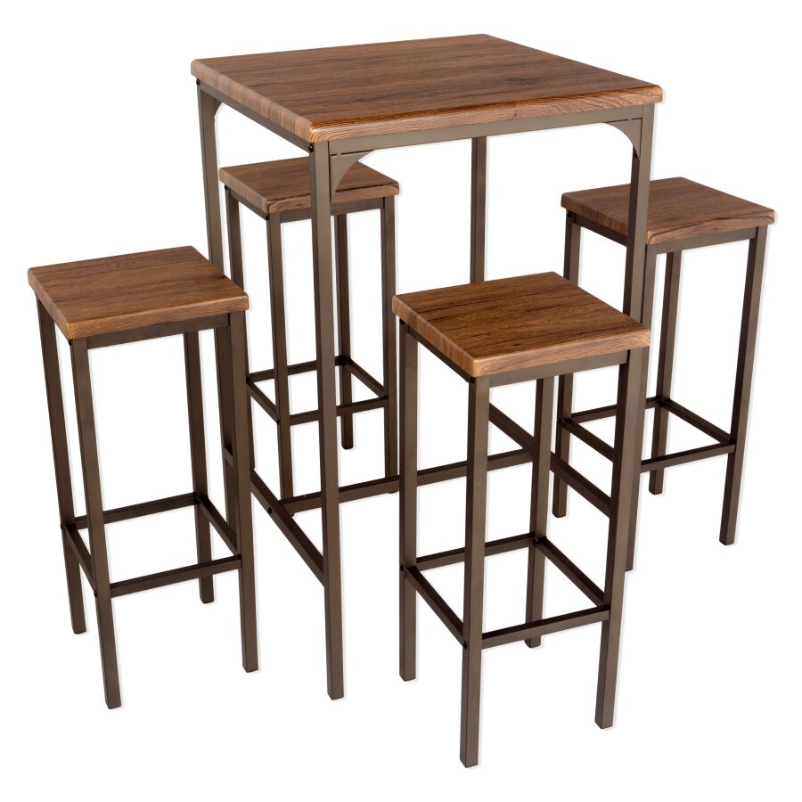 Yelloo Set aus 110 cm hohem quadratischem Bartisch und 4 walnussbraunen Hockern Mod. ROMA
