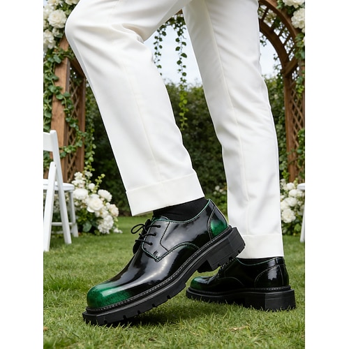 scarpe eleganti da uomo in similpelle verniciata nera e verde, design alla moda, calzature eleganti per feste, riunioni formali e matrimoni