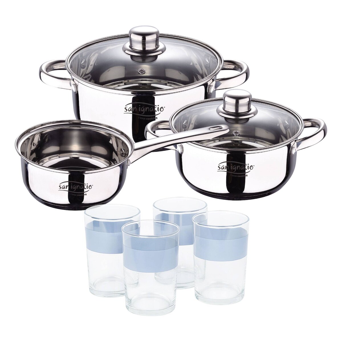 BERGNER - Kochgeschirr NONA 8-teilig 16/18/20/24 cm aus Edelstahl, induktionsgeeignet, mit 3-teiligem Messerset aus Edelstahl