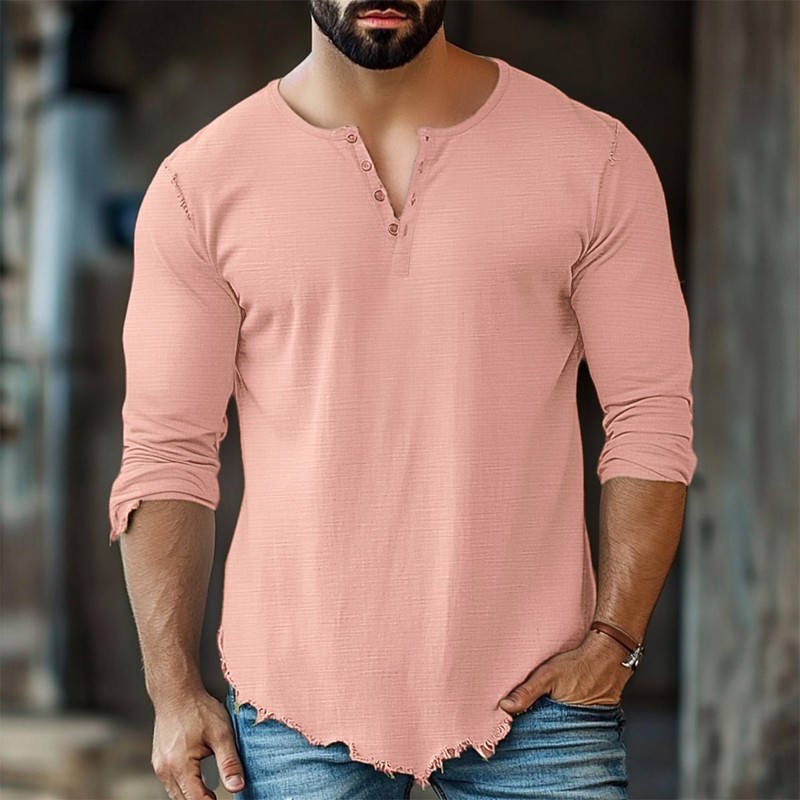 Men's Cotton Linen Shirt Henley Shirt Tee Henley Top Long Sleeve Solid Color Plain Solid Fashion Designer Casual Color Block Buttons Henley Outdoor Casual Daily Summer All Seasons White Pink Light