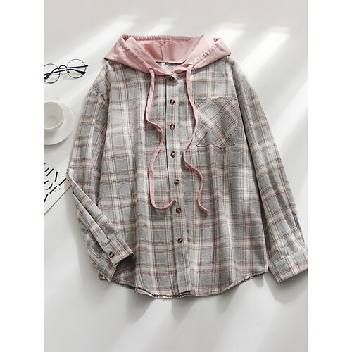 Per donna Giacca Casual Giacca con Cappuccio Confortevole Traspirante Tasca Bottoni Casual Plaid Vacanza Streetwear Casuale Abbigliamento quotidiano Monopetto Regolare Con Cappuccio Vestibilit