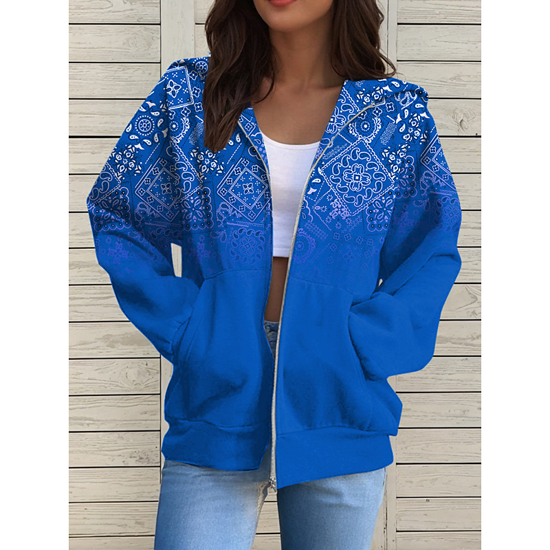 Women's Hooded Sweatshirt Jacket Long Sleeve Zip Up Hoodie With Pocket Lightweight Casual Micro-elastic Graphic Geometric Active Front Pocket Light Green Red Blue Purple Green Spring Fall