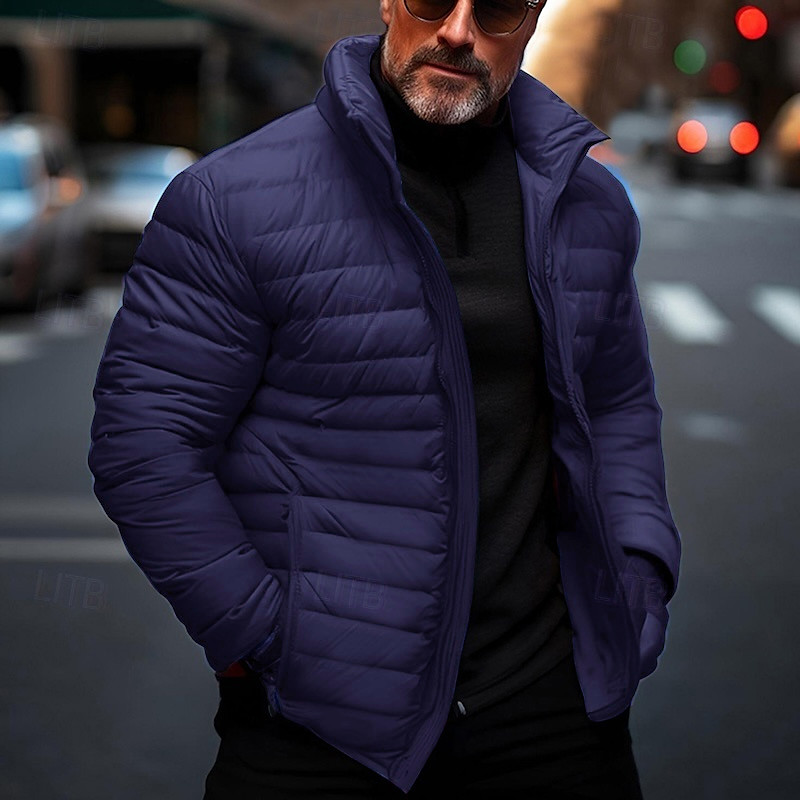 Men's Winter Coat Puffer Jacket Quilted Jacket Transition Jacket Pocket Cotton Pocket Vacation Daily Wear Date Regular Fashion Casual Comfortable Thermal Warm Fall Winter Solid / Plain Color Black