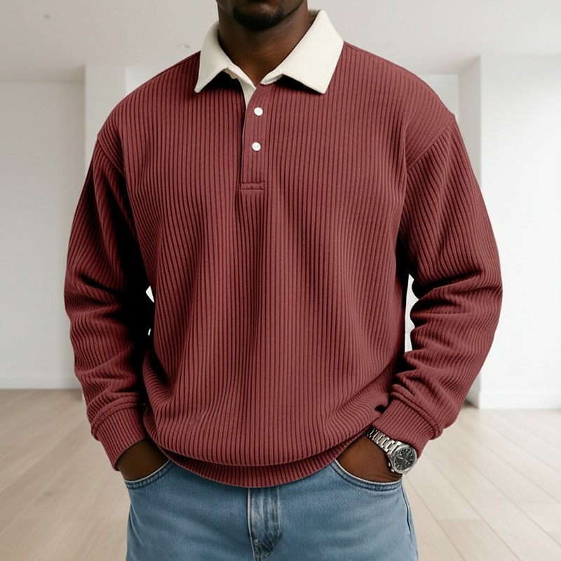 Men's Polo Corduroy Shirt Casual Sports Lapel Long Sleeve Fashion Basic Color Block Color Block Buttons Fall Spring Fall Fall Winter Regular Fit Black Wine Dark Blue Gray Light Blue Polo