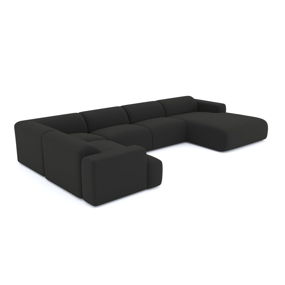 Divano panoramico 7 posti angolo destro in bouclé antracite scuro