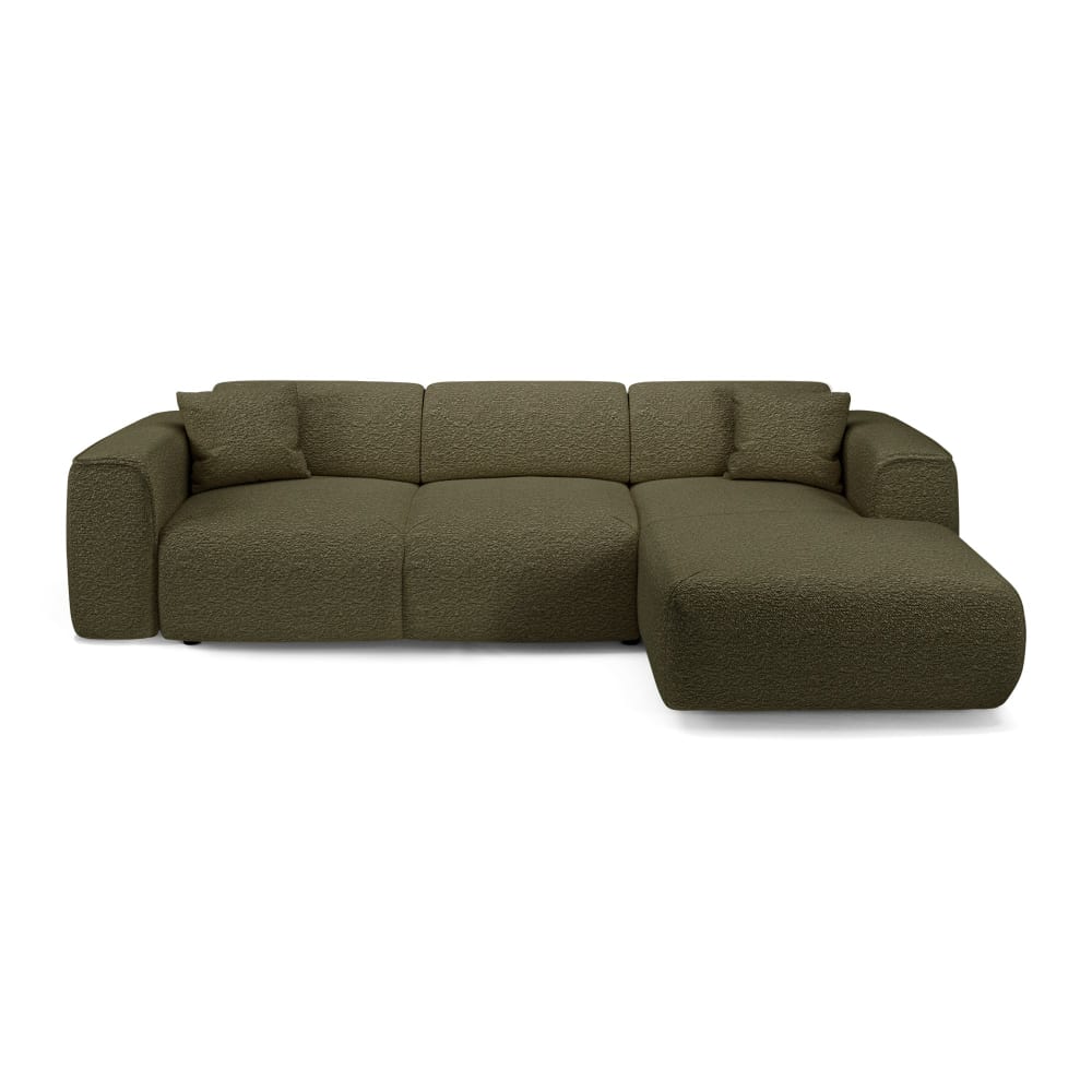 Divano letto ad angolo 5 posti in bouclé verde oliva