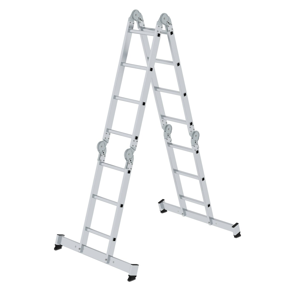 PROREGAL Vielzweckleiter 4-teilig mit nivello®-Traverse und Holzbelag 2x3 + 2x4 Sprossen
