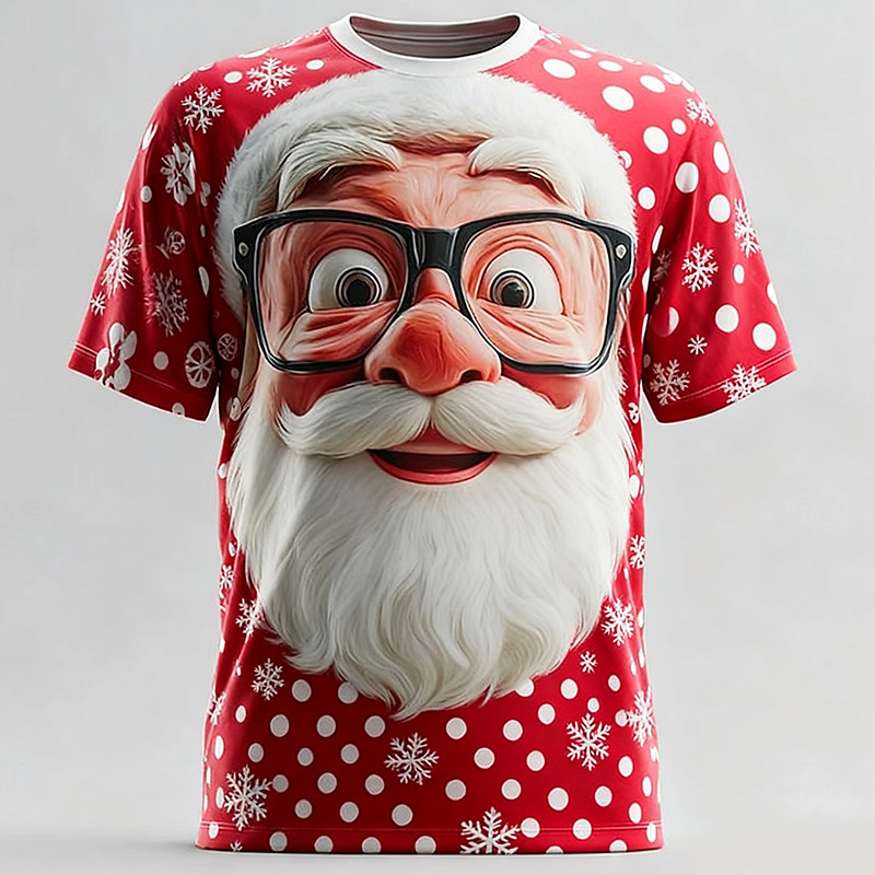 Christmas Men's Santa Claus 3D Cartoon T Shirt Short Sleeve T shirt 3D Print Crew Neck Shirt Daily Designer Artistic Vacation Party Street Red 3 Red Red 2 All Seasons Clothing Apparel S M L XL XXL