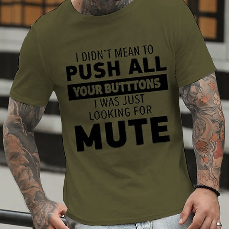 Men's Funny Graphic T-Shirt 'I Didn't Mean To Push All Your Buttons Mute' Wordplay Short Sleeve Humor Tee
