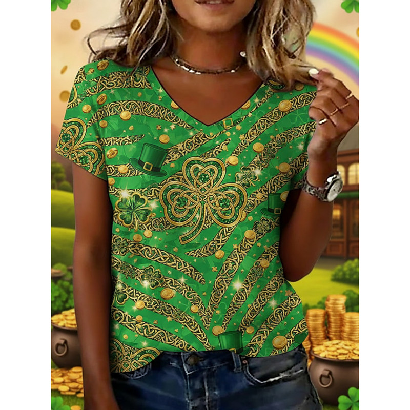 St. Patrick's Day Women's T Shirt Graphic Vintage Classic Casual Short Sleeve V Neck Regular Tops Daily Weekend Vacation Wear Print Green Summer Spring
