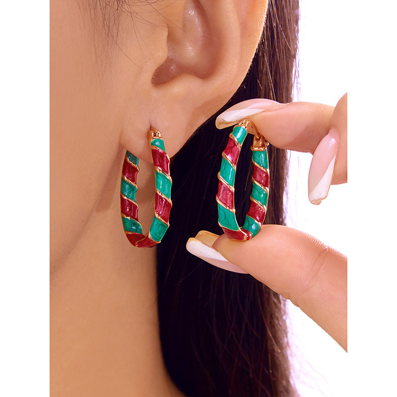 Women's Christmas Hoop Earrings, Red and Green Twisted Design, Alloy Material, Perfect for Holiday Parties and Gift Giving