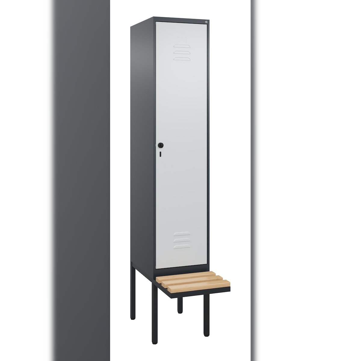 C+P Spind Classic PLUS, schwebender Sitzbank aus Buche 1 Abteil, HxBxT 212x40x82cm, Sicherheitsdrehriegel, Anthrazit/Hellgrau von PROREGAL