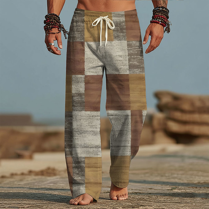 Men's Geometric Color Block Patchwork Trousers Baggy Pants Casual Pants Mid Waist Fashion Home Outdoor Vacation Elastic Drawstring Waist Linen-Like Pants with Pockets Summer Spring 3D Print Blue