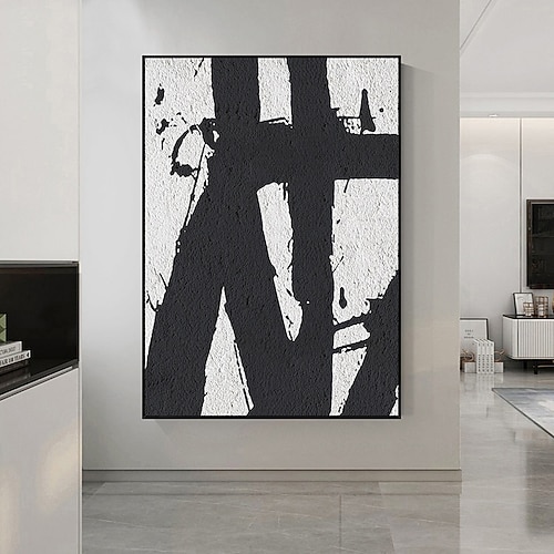 dipinto a olio fatto a mano su tela, decorazione da parete, moderno, bianco e nero, semplice, astratto, per arredamento casa, dipinto appeso su telaio teso/tela arrotolata (senza cornice)