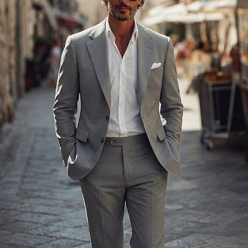 Uomo Abiti da sposa Casuale Affari Nero Borgogna Estate Tuta Bavero classico Moda Stile da Strada Tinta unita Vestibilità su misura 2 pezzi Monopetto Due Bottoni