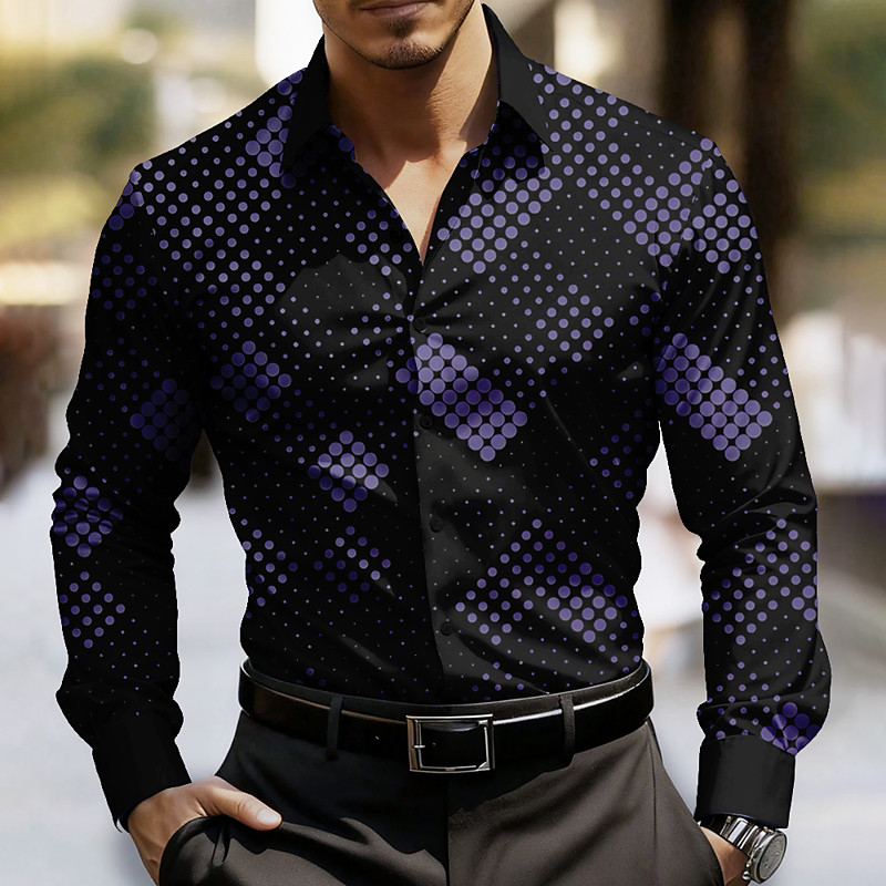 Men's Geometric Polka Dot Gradient Color Shirt Button Up Shirt Long Sleeve Fashion Casual Outdoor Dailywear Spring Fall Turndown 3D Print Collared Shirts Black / Purple Black / Blue Black / Orange