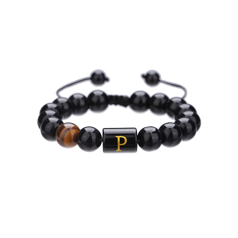Men's Adjustable Natural Stone Bracelet with Alphabet Letter Design, Customizable with 26 Letters, Perfect for Gifting, Casual and Special Occasions