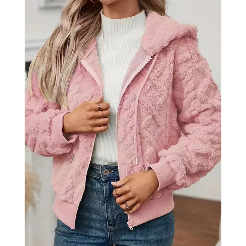 Women's Teddy Coat Hoodie Jacket Warm Comfortable Zipper Casual Plain Outdoor Vacation Holiday Going out Zipper Regular Hooded Regular Fit Long Sleeve Outerwear Black White Pink Fall Winter