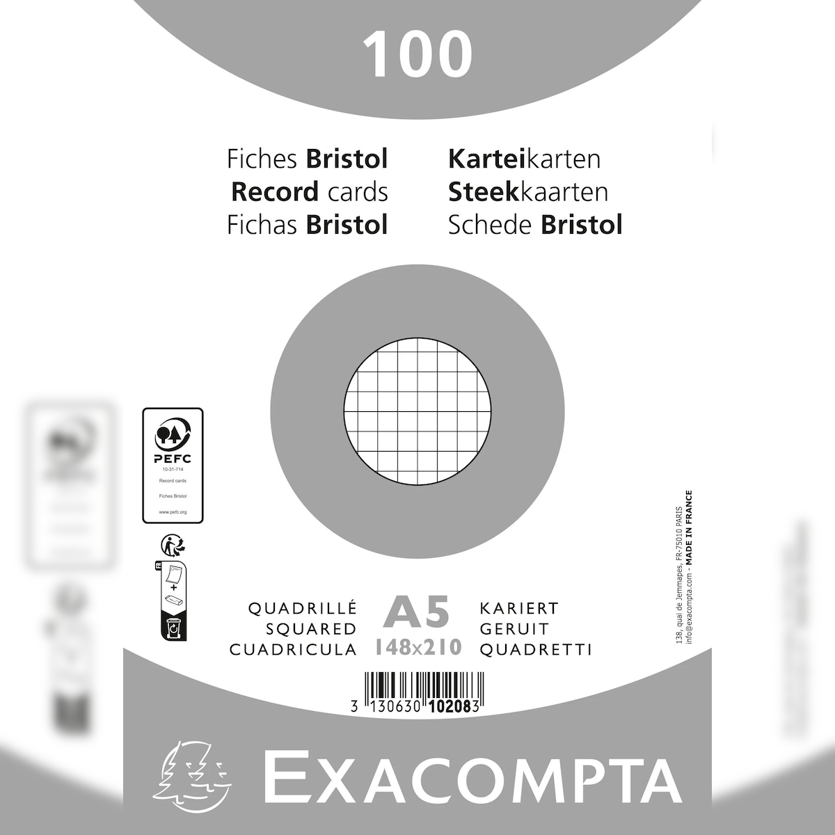 Exacompta 10208E 10x Karteikarten kariert DIN A5 100 St eingeschweißt - Weiß