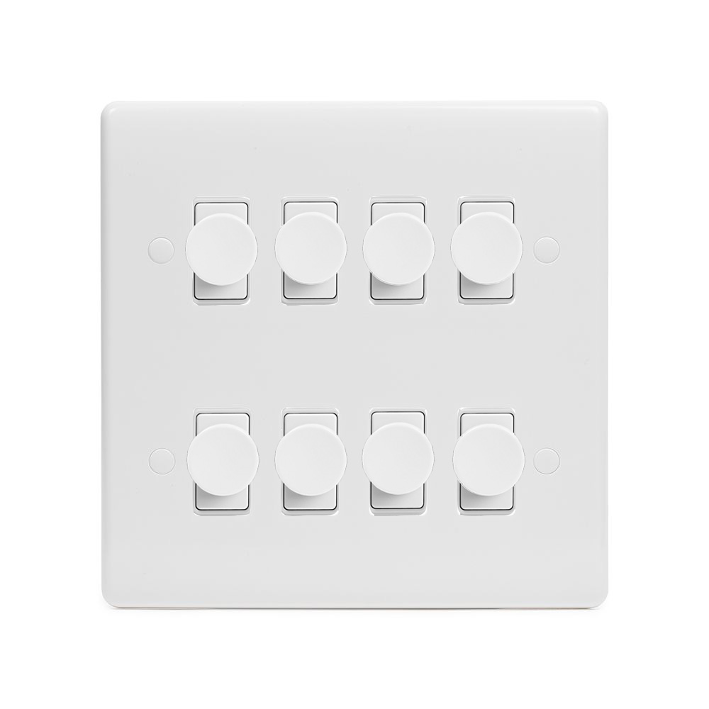 Lieber Silk White 8 Gang 2 -Way Intelligent Dimmer LED 150W LED (300w Halogen/Incandescent) - Curved Edge