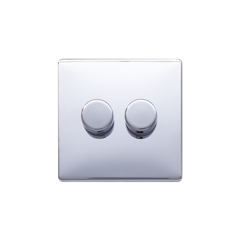 Click Deco 2 Gang 2 Way 10AX Switch Polished Chrome White Inserts