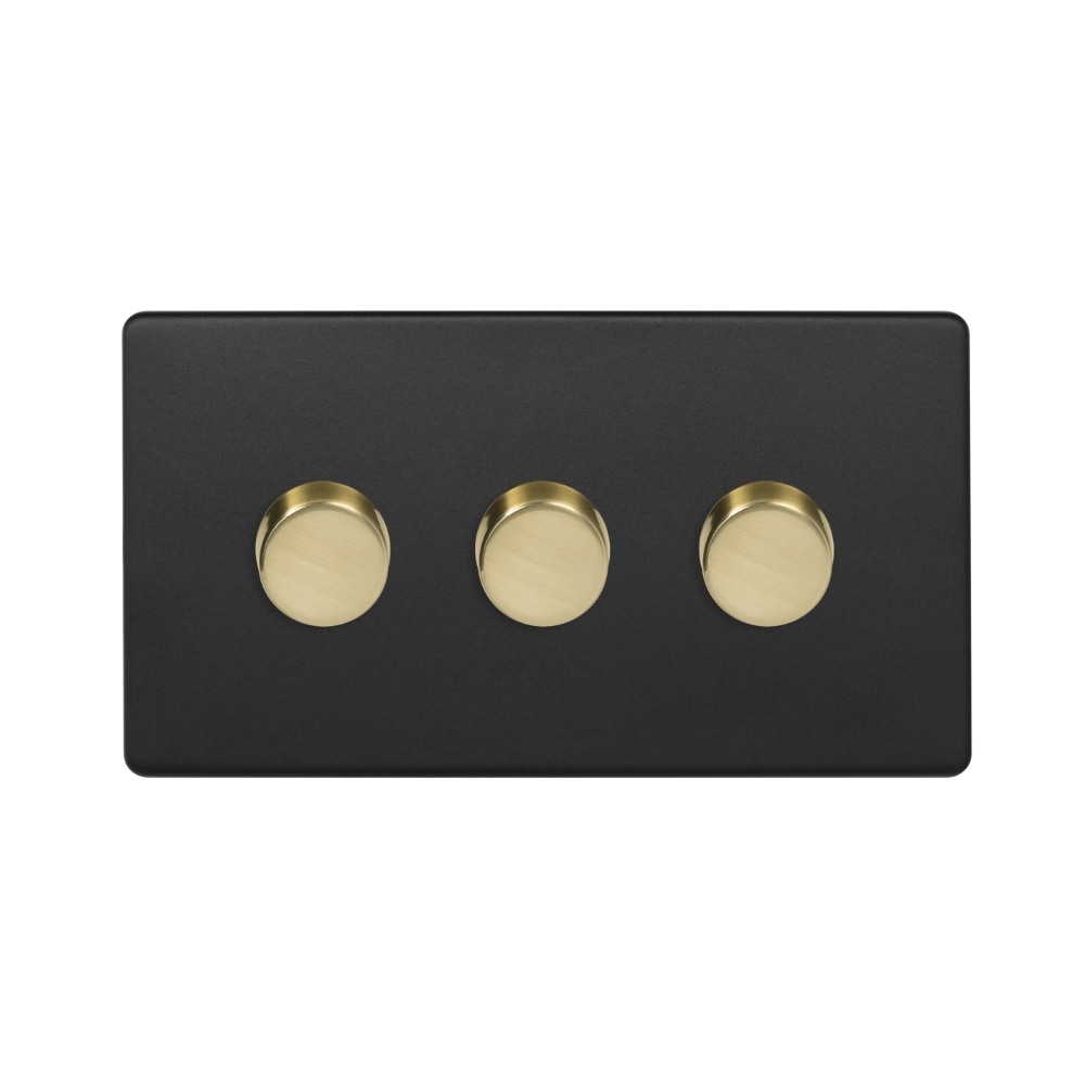 Soho Lighting Bronze & Brushed Brass 3 Gang 2 -Way Intelligent Dimmer 150W LED (300w Halogen/Incandescent) - Size: 146mm x 86mm