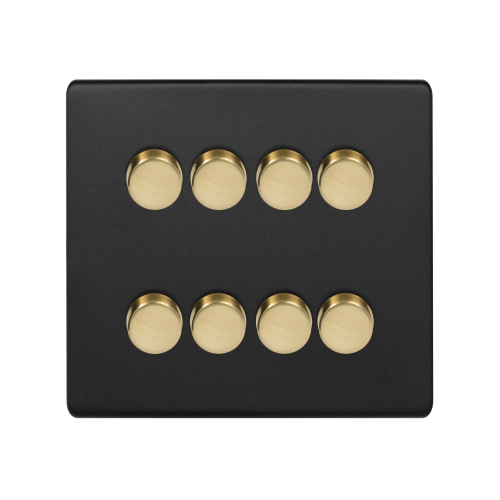 Soho Lighting Matt Black & Brushed Brass 4 Gang Switch With 1 Intermediate (3 x 2 Way Switch with 1 Intermediate) Blk Ins Screwless