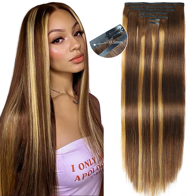 Highlight P4/27 20-24 Inch Straight Hair Long 7PCS Set PU Thick Clip in on Hair Extensions
