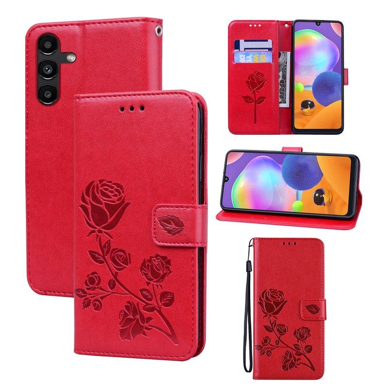 Samsung Galaxy A55 5G Plånboksfodral Konstläder Rosmönster - Röd