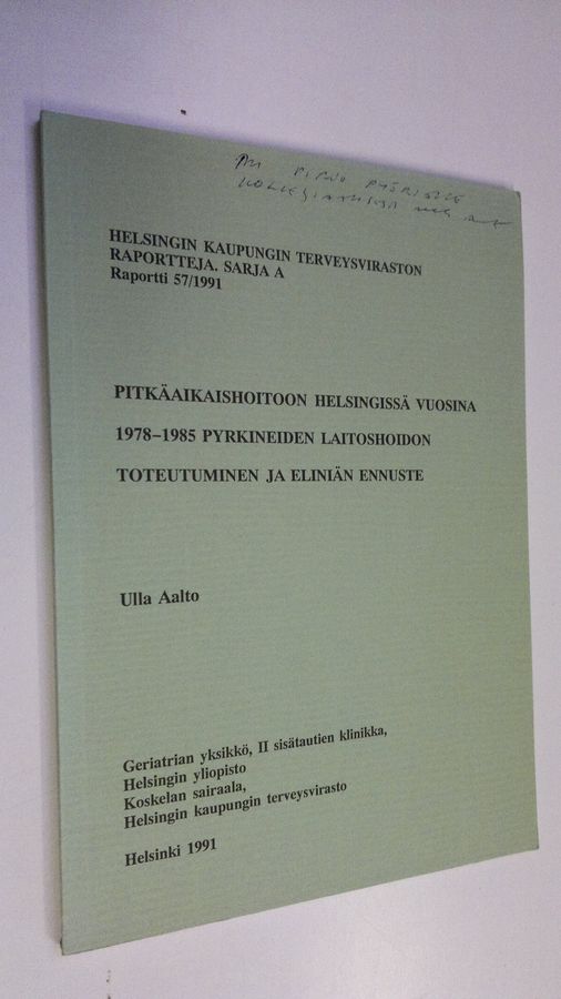 Ulla Aalto : Pitkäaikaishoitoon Helsingissä vuosina 1978-1985 pyrkineiden laitoshoidon toteutuminen ja eliniän ennuste