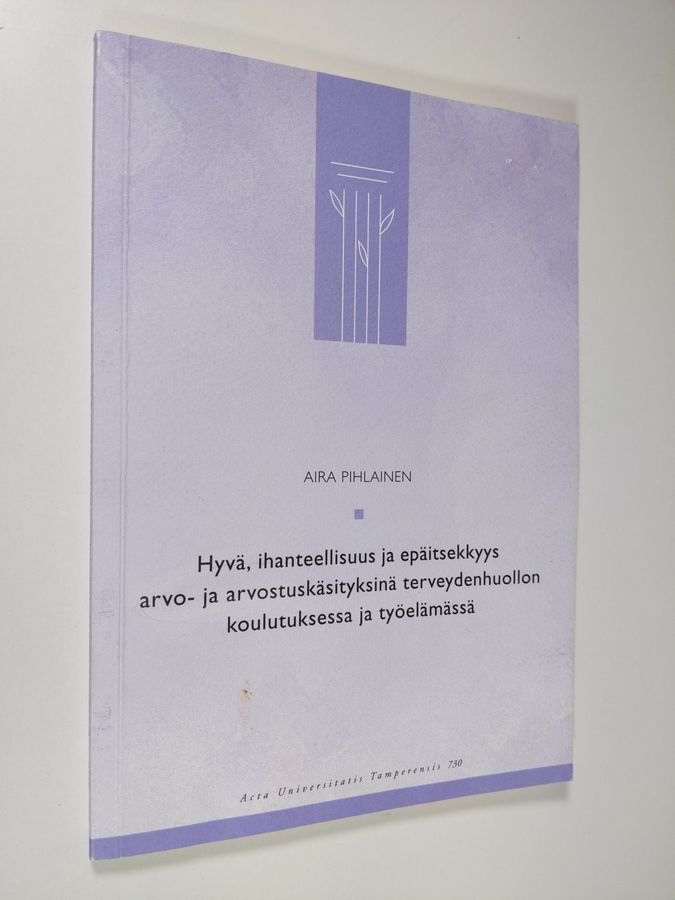 Aira Pihlainen : Hyvä, ihanteellisuus ja epäitsekkyys arvo- ja arvostuskäsityksinä terveydenhuollon koulutuksessa ja työelämässä