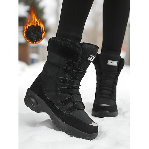 stivali da neve caldi da donna con fodera in pelliccia sintetica – scarpe invernali impermeabili e antiscivolo per la neve e il freddo all'aperto