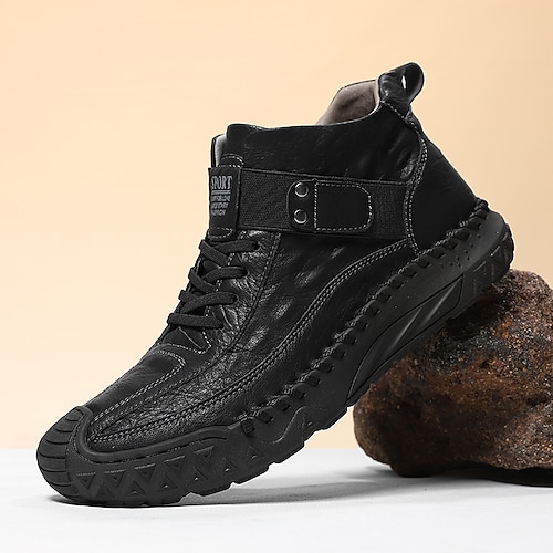 scarponi da trekking da uomo in vera pelle sintetica marrone con suola antiscivolo – calzature casual da viaggio e avventura