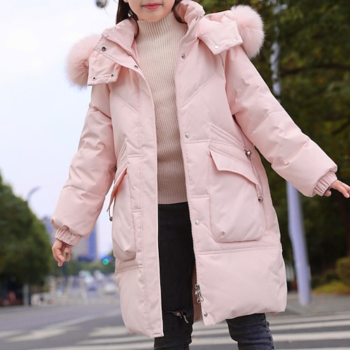 Bambini Ragazze Giacca in piuma Giacca Imbottita Tinta unica Sport Tasca Tenere al caldo Antivento All'aperto Cappotto Capispalla 4-12 Anni Inverno Nero Bianco Rosa
