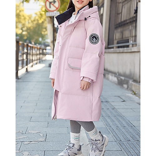 Bambini Ragazze Giacca in piuma Giacca Imbottita Lettera Sport Tasca Tenere al caldo Antivento All'aperto Cappotto Capispalla 4-12 Anni Inverno Blu Nero Rosa